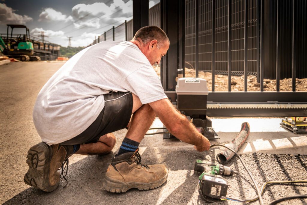 Particularité : Pose d’un portail motorisé sécurisé avec badge magnétique et détection anti-intrusion